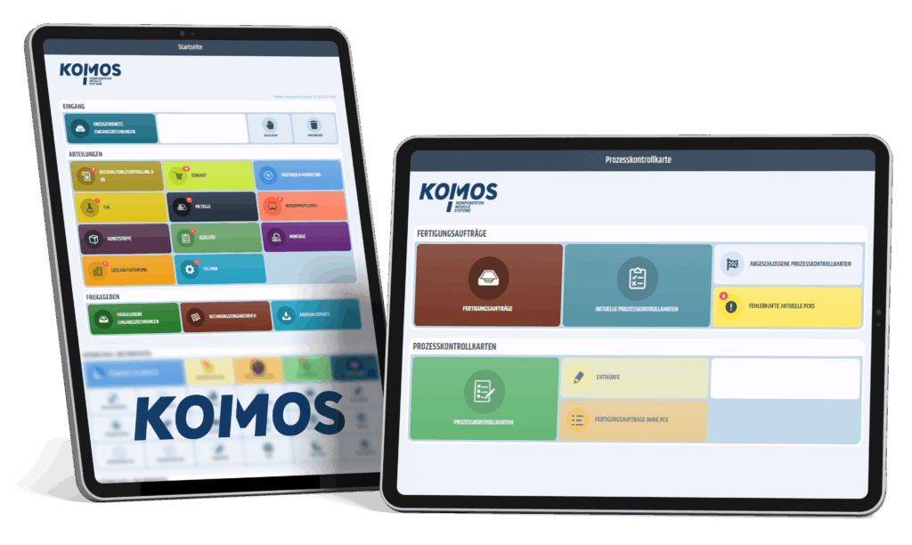 Über 30 Jahre Fertigungserfahrung treffen bei KOMOS auf modernste Digitalisierung. Dabei verstehen wir Technologie nicht als Selbstzweck, sondern als Werkzeug für bessere Qualität, mehr Sicherheit und stabile Prozesse. Mit der KOMOS App haben wir eine interne Lösung geschaffen, die alle relevanten Informationen zentral zusammenführt, Prozesse sichtbar, steuerbar und effizient macht – und damit die Basis für Präzision, Termintreue und maximale Prozesssicherheit bildet.