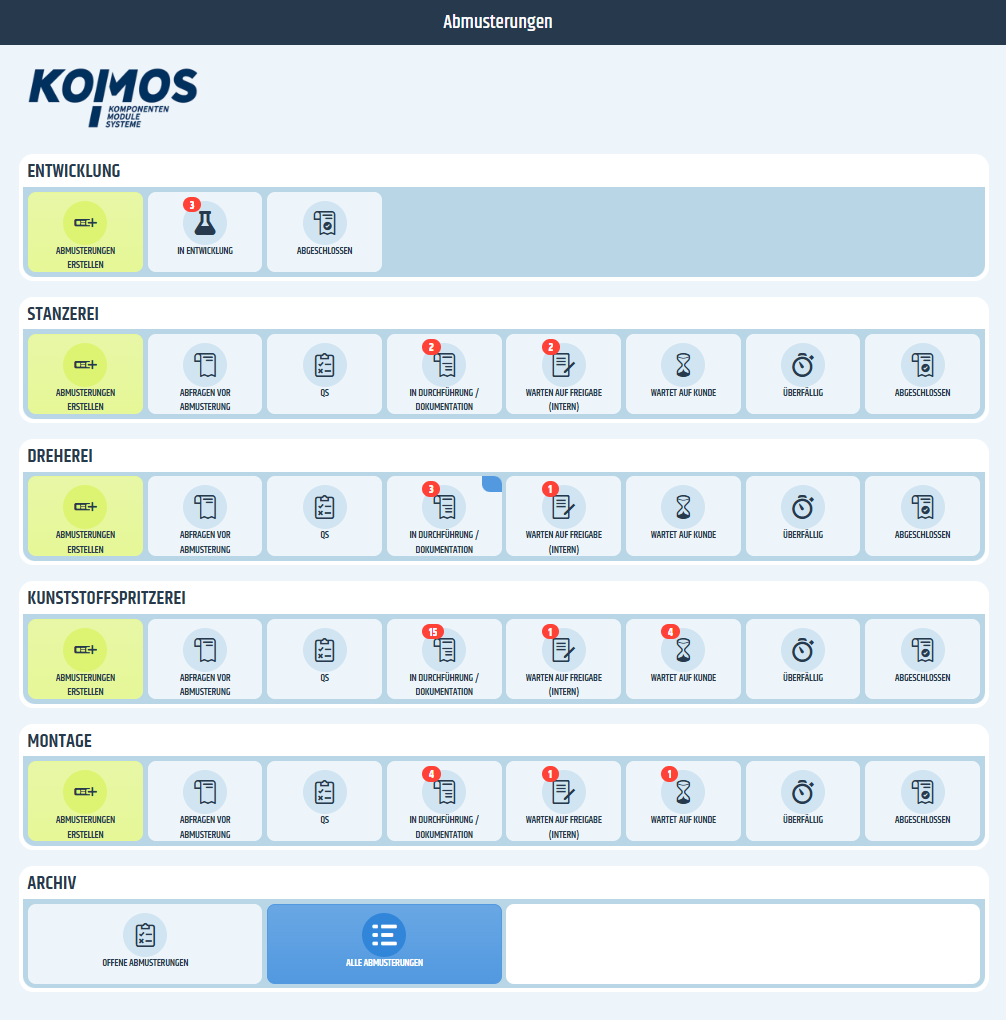 Seit 2022 steuern wir alle Fertigungs- und Verwaltungsprozesse über unsere eigeneKOMOS App. Sie ist unsere zentrale Plattform für Daten, Entscheidungen und Prozesssicherheit und sorgt dafür, dass Produktions- und Freigabeprozesse effizient, sicher und nachvollziehbar ablaufen. Jeder Schritt – von der Auftragsplanung bis zur Auslieferung – wird damit für Sie transparent und zuverlässig steuerbar und ist ein wesentlicher Bestandteil unseres Qualitätsversprechens.